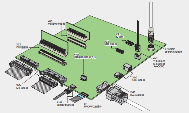 連接器定義連接器是指以連接或斷開電器回路為目的而使用的部品、零件。無需焊接等特別工具及程序。通過手工或簡單的工具,連接或切斷產品。連接器種類繁多,但大致分為獨立使用的單片型、由插頭和插座構成的雙片型共兩種,單片型直接將印刷基板或電線連接于連接器。雙片型分為插頭和插座兩部分,插頭與插座的嵌合部位稱為接